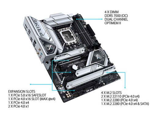 Next-gen connectivity: DDR5 memory, PCIe® 5.0, Intel 2.5 Gb Ethernet, USB 3.2 Gen2x2 Type-C®, front panel USB 3.2 Gen 2 Type-C®, Thunderbolt™ (USB4®) header support, 4 PCIe® 4.0 M.2